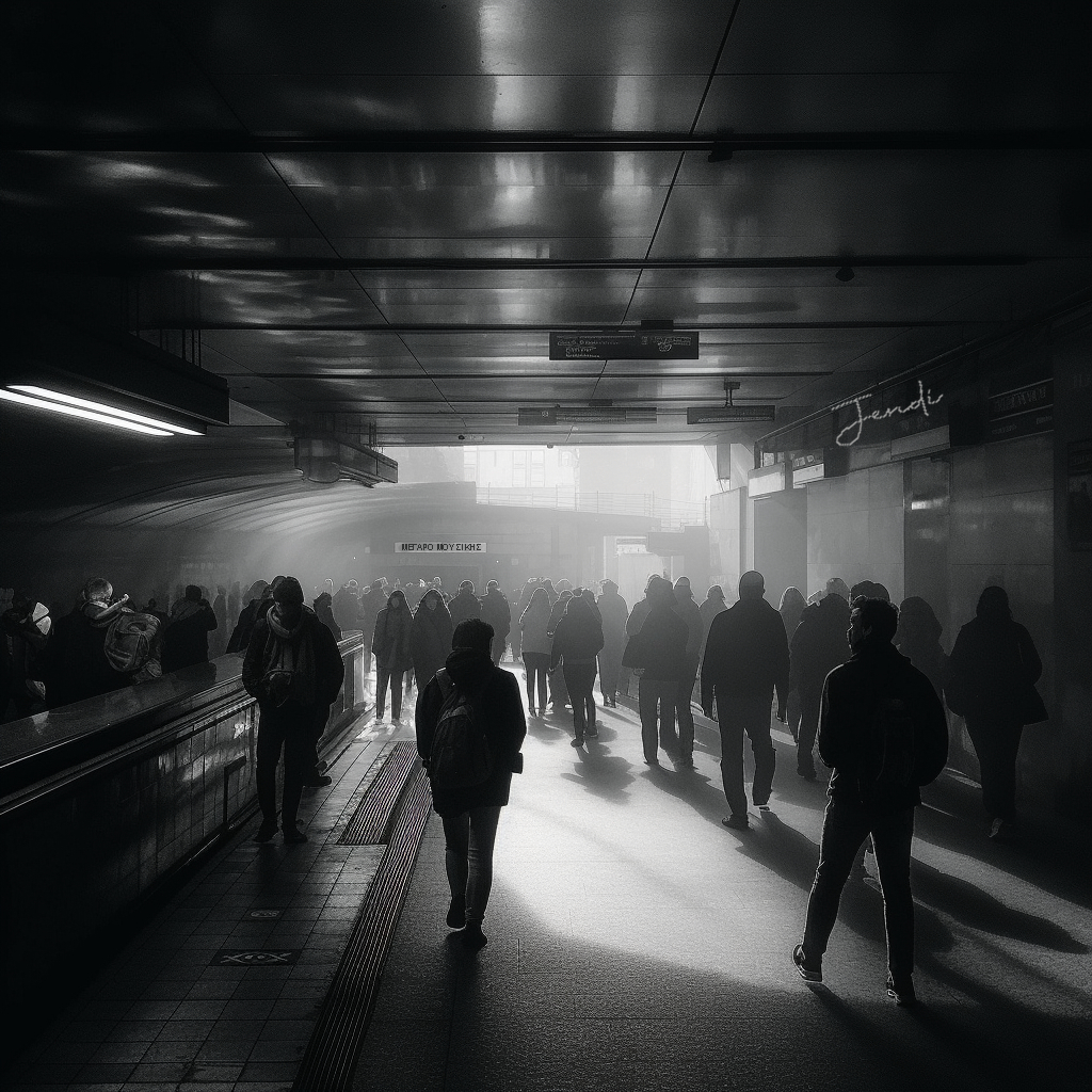 για να «επιβιώσω » έκλεισα όλους τους εξωτερικούς ήχους από το ποτενσιόμετρο εκτάκτου ανάγκης …. και «άδειασα» όλο το τραίνο με την σκέψη μου, έχοντας τέρμα τη μουσική. Ναι με τέρμα μέταλ μουσική….μόνο μέταλ… παράδοξο ε? Αλλά αυτή η μουσική με σταθεροποιεί. Τι να σκέφτονταν άραγε οι γύρω μου, που με βλέπουν να παραπατάω με κλειστά μάτια, αγκαλιά με ένα δοκάρι (πως τους λένε άραγε τους σωλήνες που κρατιέστε μέσα στο μετρό)?